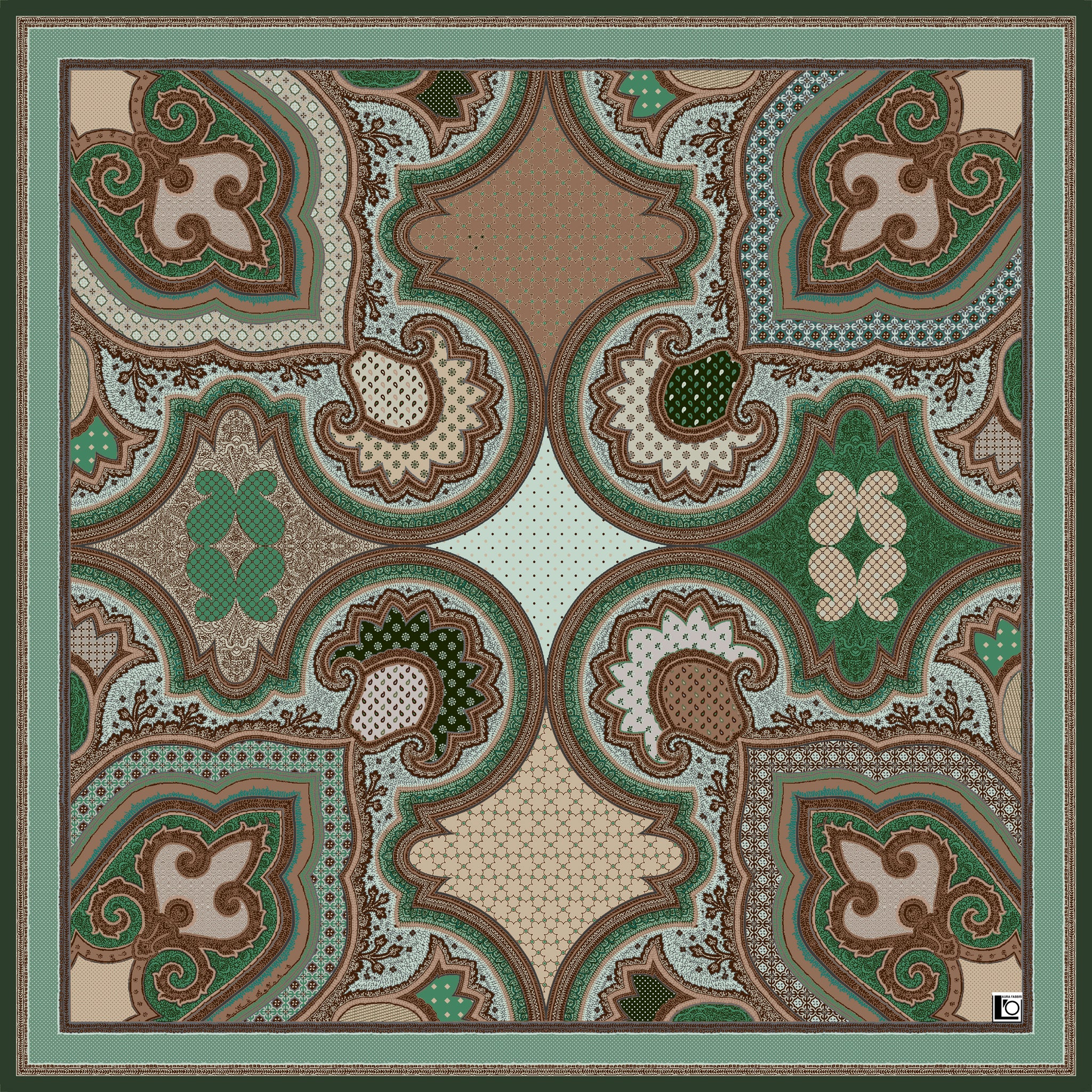 Foulard seta 90*90 seta geometrico verde