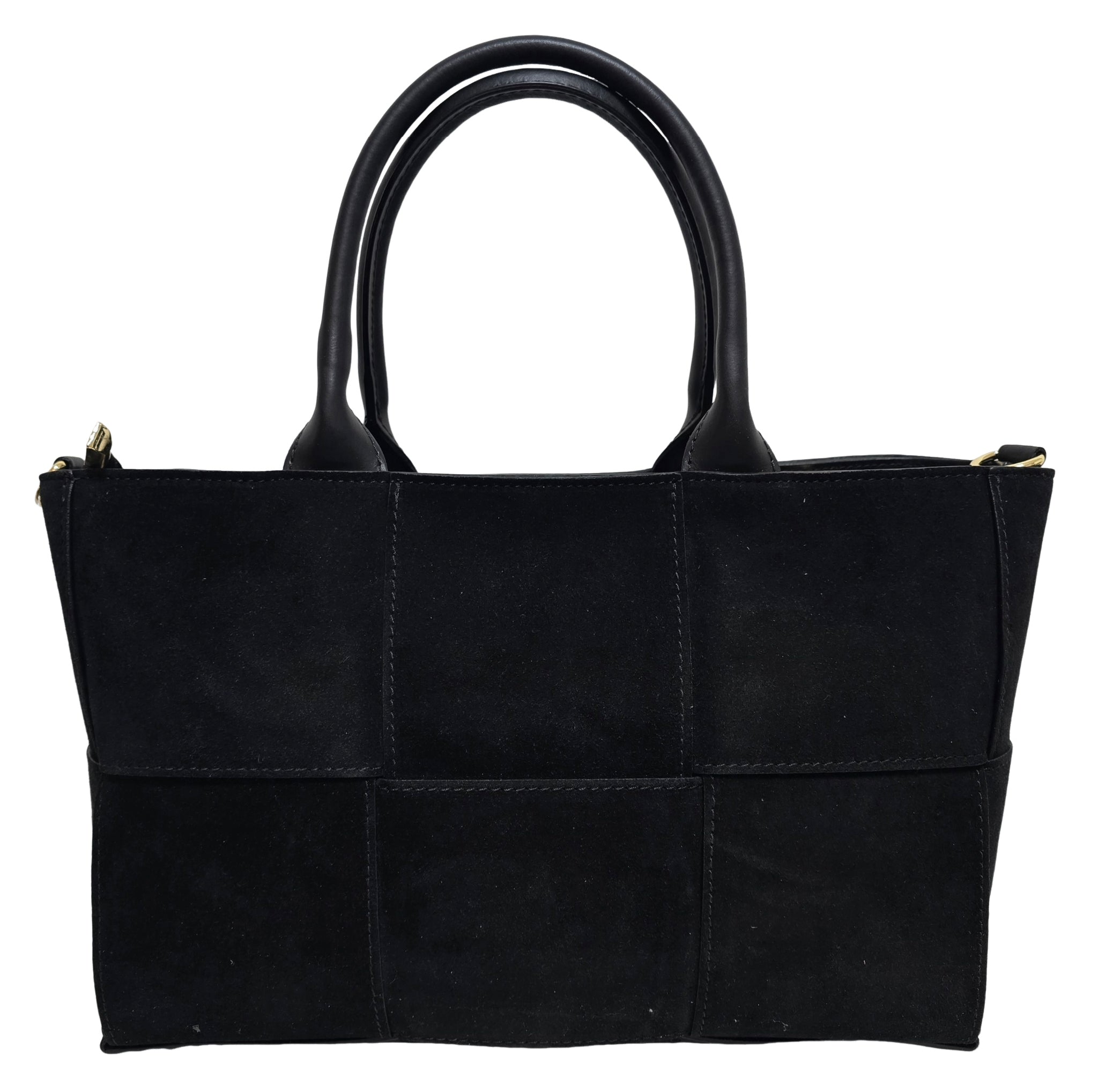 Borsa in pelle camoscio nero, morbida e stilizzata Made in Italy size 34*25*16