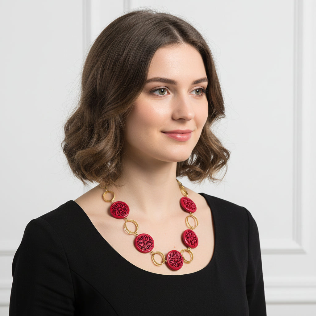 • Carica l'immagine nel visualizzatore di Gallery, Collana anelli placcati oro con resine tonde rosse